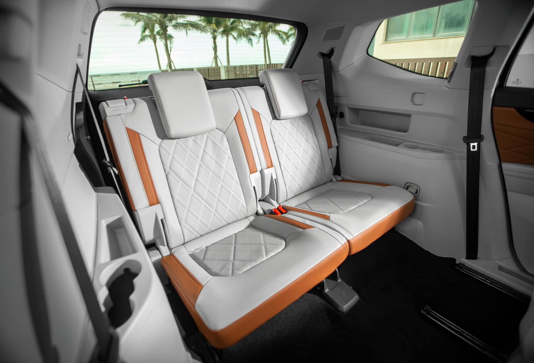 Hàng ghế thứ 2 độc lập, có tựa tay riêng, ghế trượt lên xuống, có lối đi riêng vào hàng ghế thứ 3.
