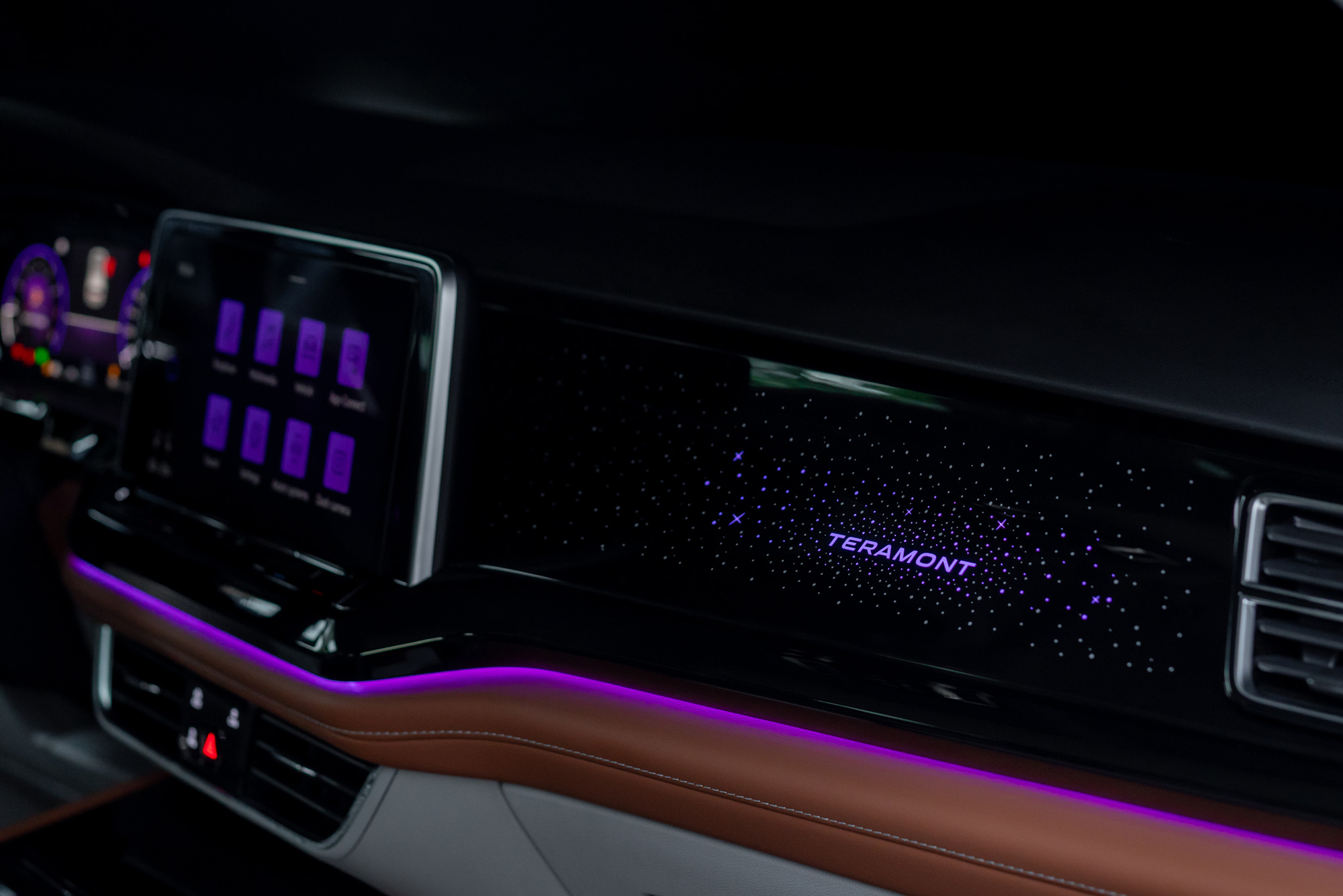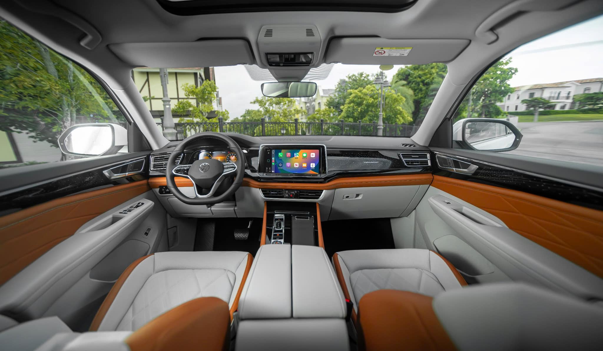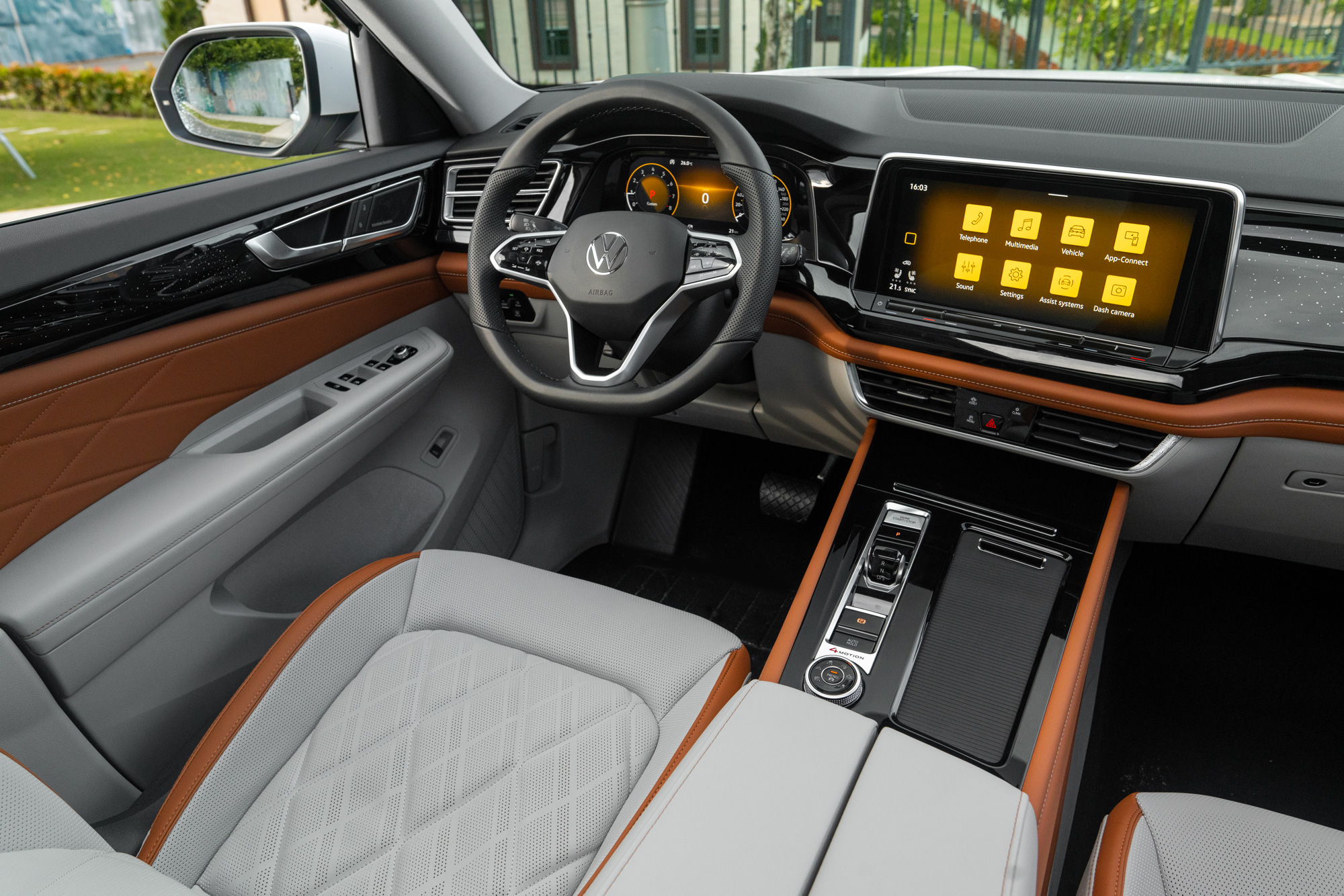 Ở bên trong, Teramont President có thiết kế nội thất mang đậm phong cách tối giản và sang trọng cộp mác Volkswagen. Một số trang bị nổi bật của mẫu SUV này bao gồm màn hình giải trí 12 inch, bảng đồng hồ có kích thước 10,25 inch, cần số điện tử, vô-lăng thiết kế mới, ốp bảng điều khiển tích hợp đèn trang trí 30 màu với giao diện trời sao, điều hòa tự động 3 vùng, hệ thống âm thanh Harman Kardon 12 loa.