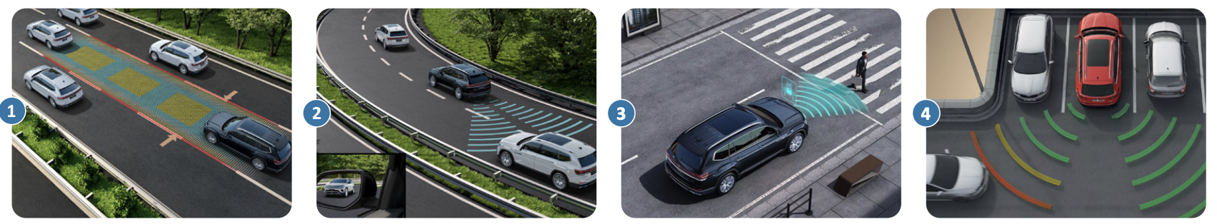 Bên cạnh đó là gói tính năng hỗ trợ lái xe thông minh (ADAS) bao gồm kiểm soát hành trình thích ứng (ACC), hỗ trợ chuyển làn (LCA), giám sát phía trước và phanh khẩn cấp (Front Assist & AEB) và cảnh báo phương tiện cắt ngang khi lùi (RTA).